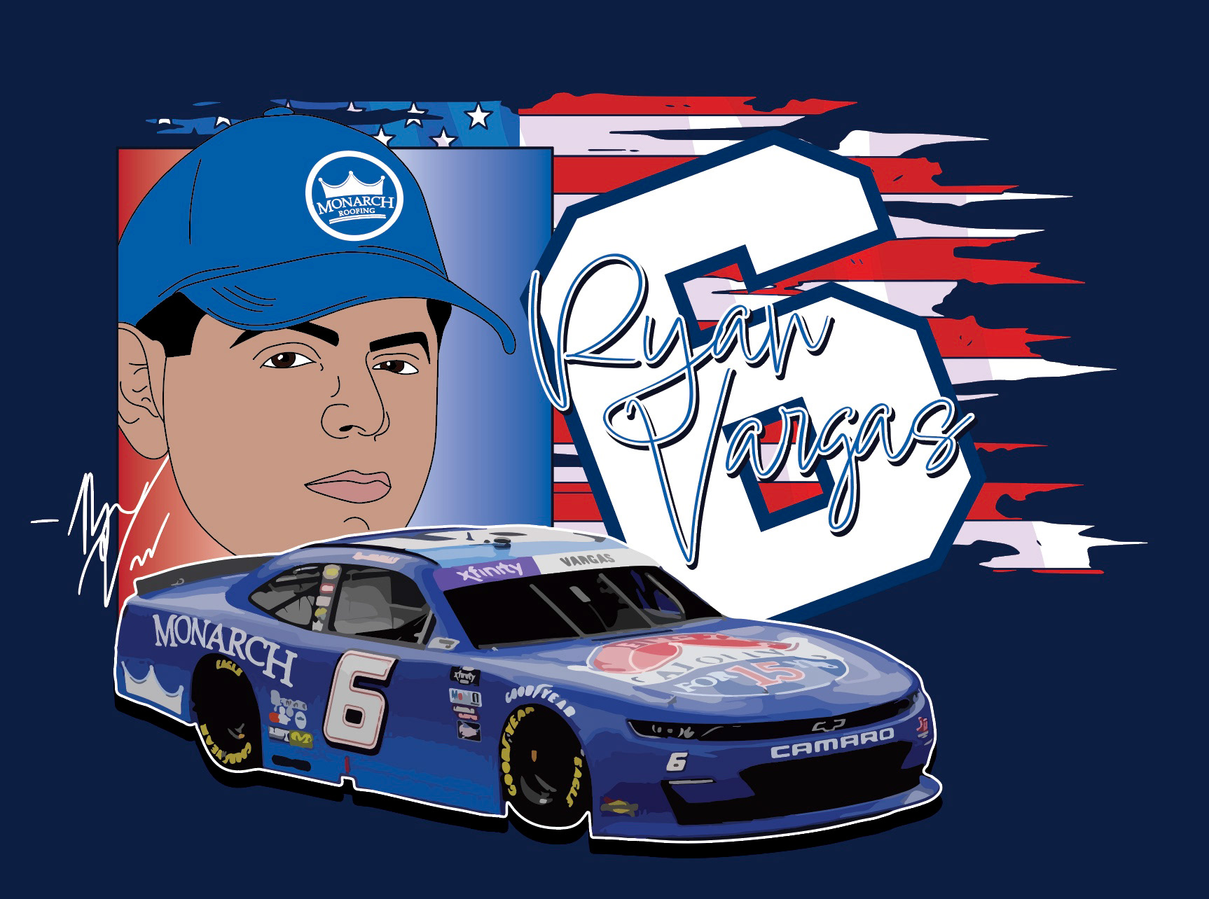 This custom t-shirt design was created for Monarch Roofing’s Home Show Meet & Greet event, featuring NASCAR driver Ryan Vargas. As part of my art portfolio, this piece highlights my skills in graphic design and event-driven apparel creation. The design was crafted to capture the dynamic energy of both the racing world and the Monarch Roofing brand, blending bold, racing-inspired graphics with the spirit of the event.